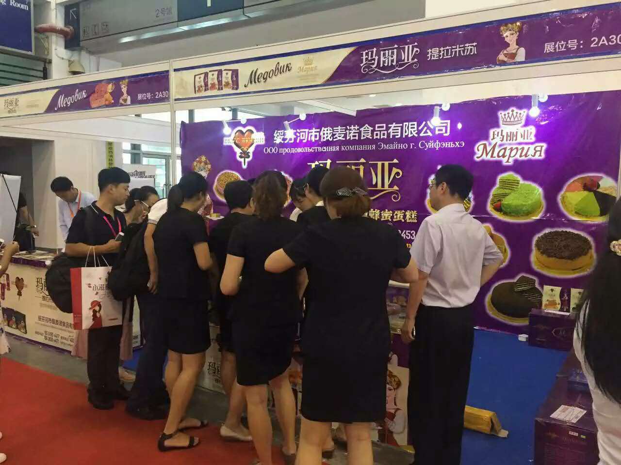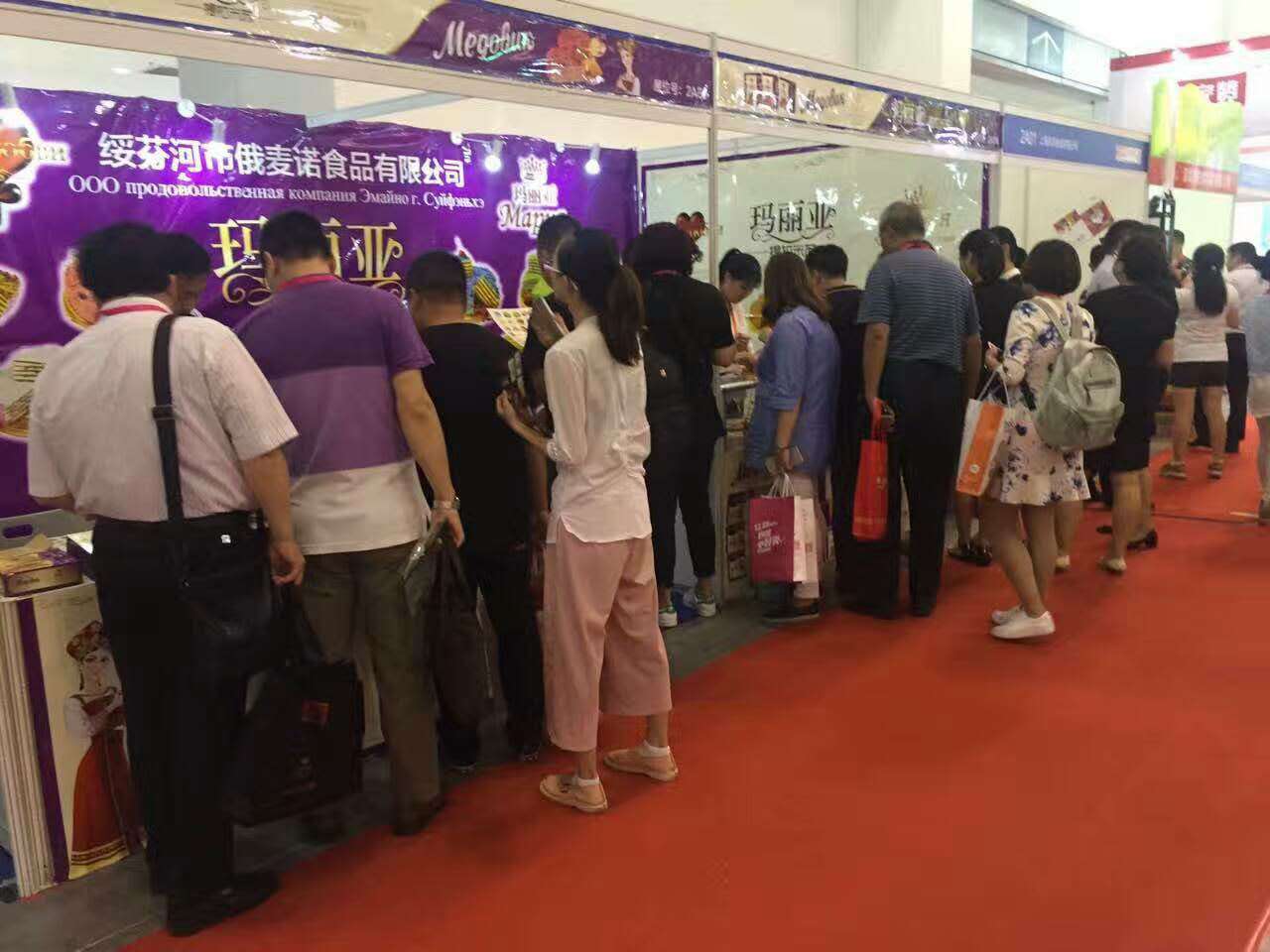黑龙江省绥芬河市俄麦诺公司参展产品为公司旗下品牌“玛丽亚提拉米苏·俄罗斯蜂蜜蛋糕”系列产品,玛丽亚提拉米苏在北方市场享誉盛名,口碑极佳,本次推进南方市场,经过3天的展出,深受南方各界商家喜爱,纷纷与我们进行洽谈合作意向十分强烈!与会期间接洽了多位看好玛丽亚提拉米苏市场前景的商家,有意向深度合作!会后将会逐一进行推广合作的实质性洽谈,合作共赢!