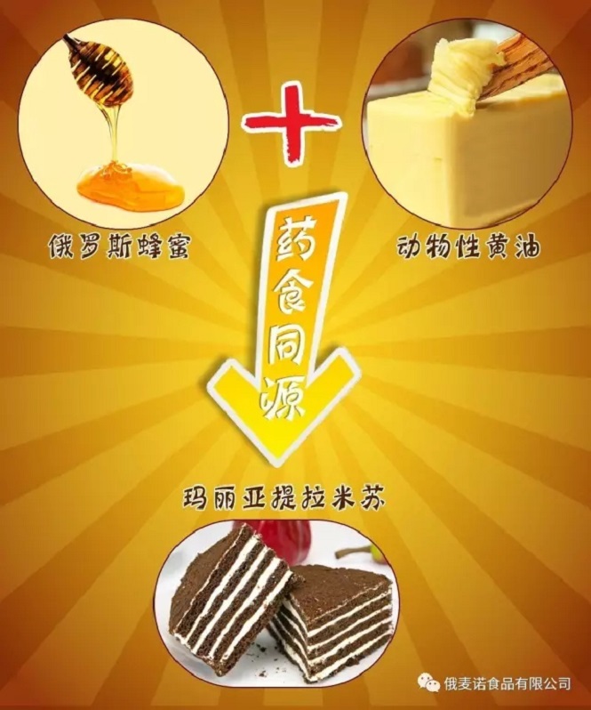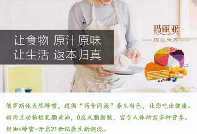针对亚健康状态人群开发出了俄式蜂蜜蛋糕系列产品——玛丽亚提拉米苏。玛丽亚提拉米苏采用