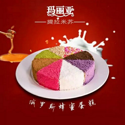 提拉米苏,它是使用面粉和蜂蜜掺和、再与俄罗斯本土产的上好酸奶油、炼乳、