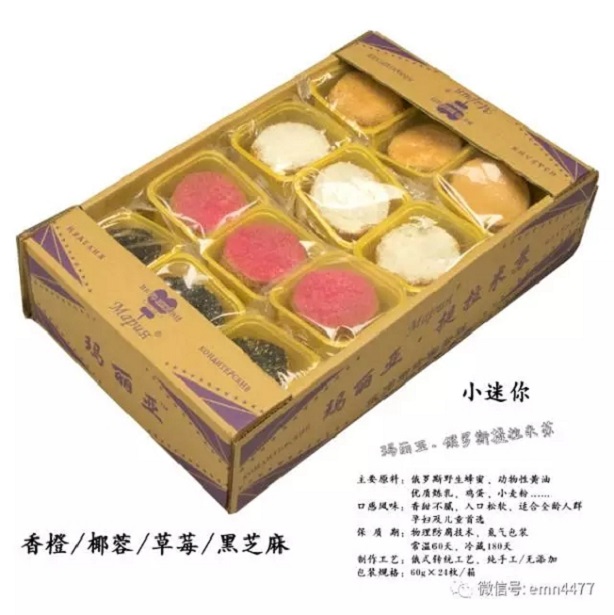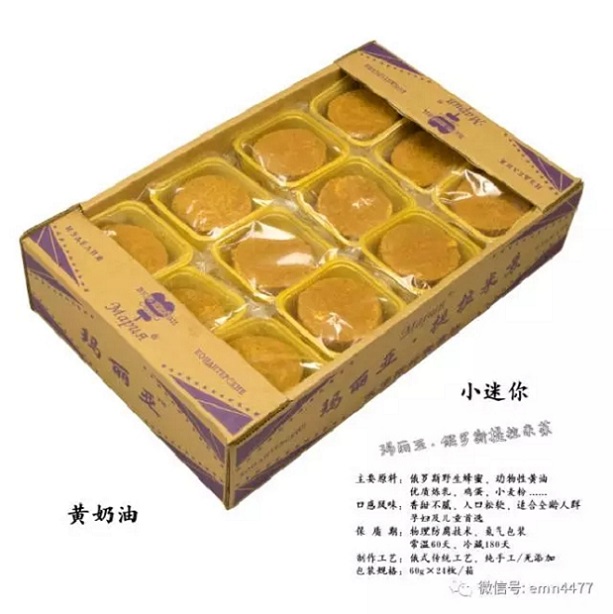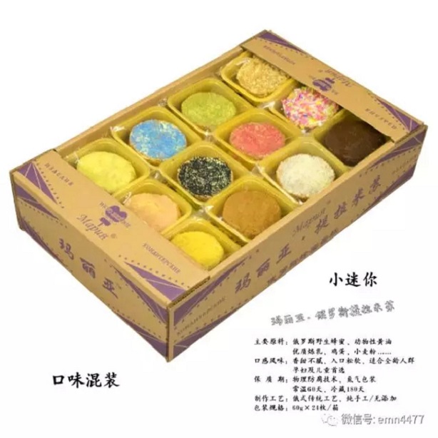 玛丽亚轻装小米你中文包装在全国各大商超都可以上架销售,拥有黄奶油和黑可可两种口味,精美的包装设计深受消费