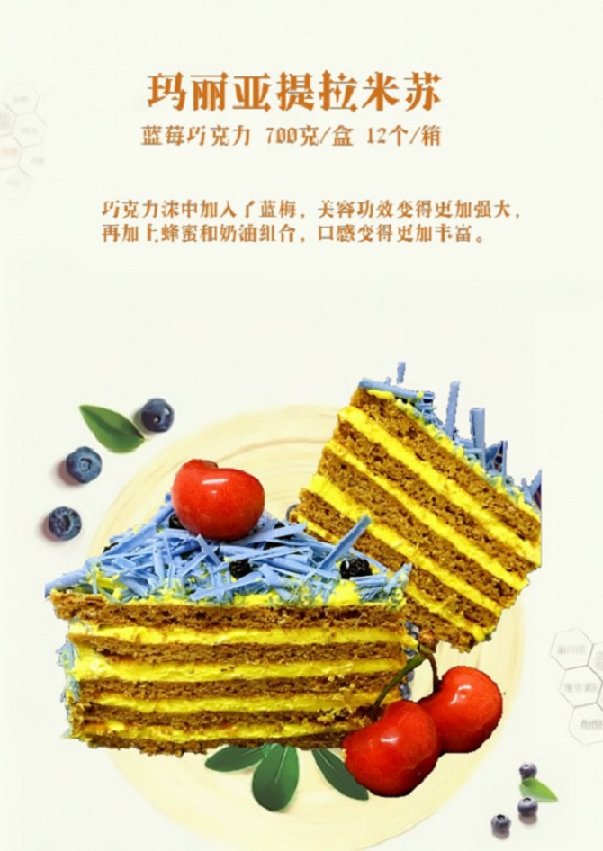 绥芬河市俄麦诺食品有限公司 玛丽亚提拉米苏:8寸、700克,拥有众多口味可供选择,高档包装礼盒,送礼倍